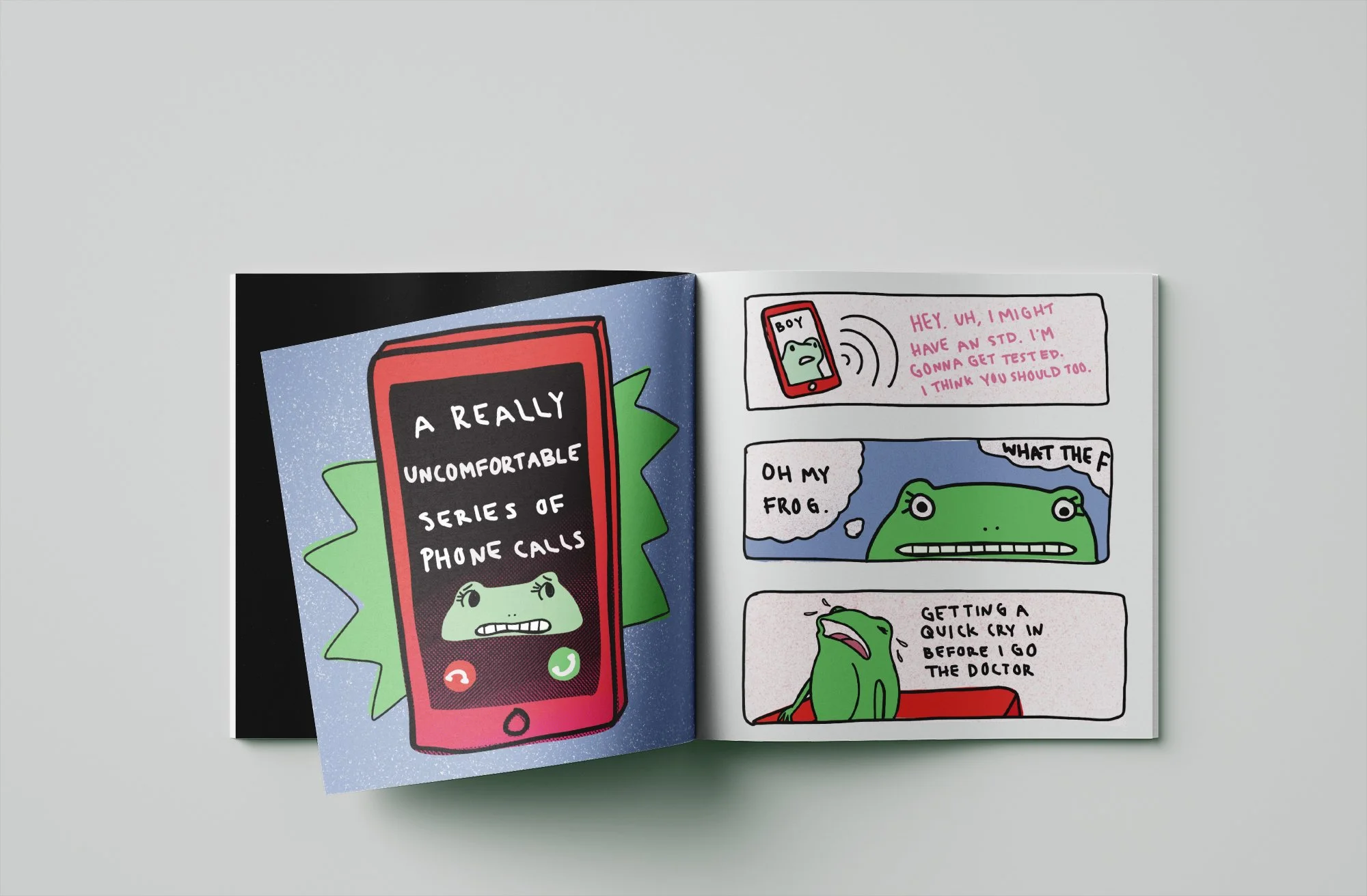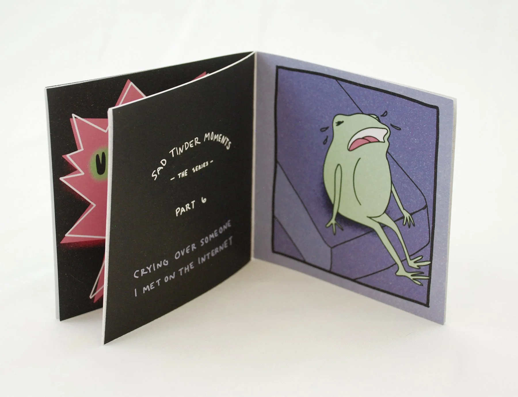 Mobile Amphibians is a comedic, illustrative zine that tells both personal and collected stories about the realities of dating in 2020, with a critical perspective on the pitfalls of modern and online dating.